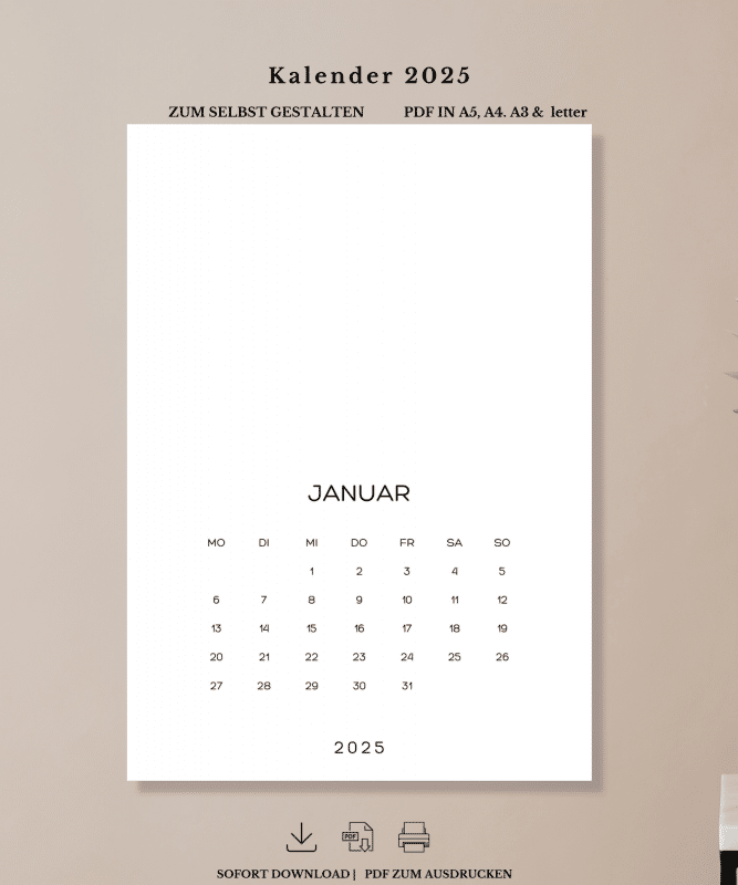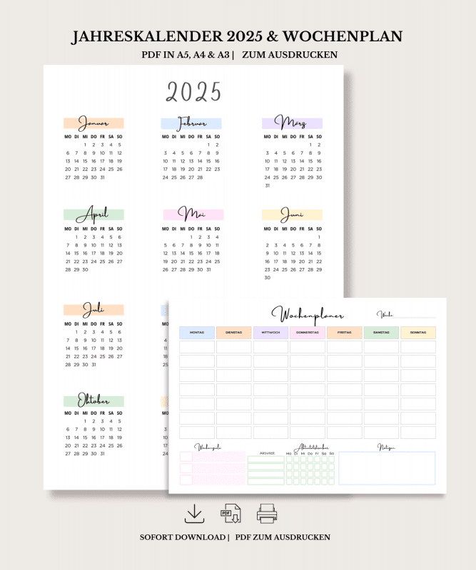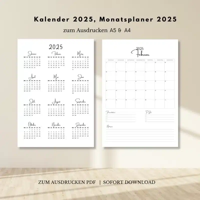 Kalender und Vorlagen zum Ausdrucken. Digitale Designvorlagen. Planer, Jahresplaner zum selbst Ausdrucken.